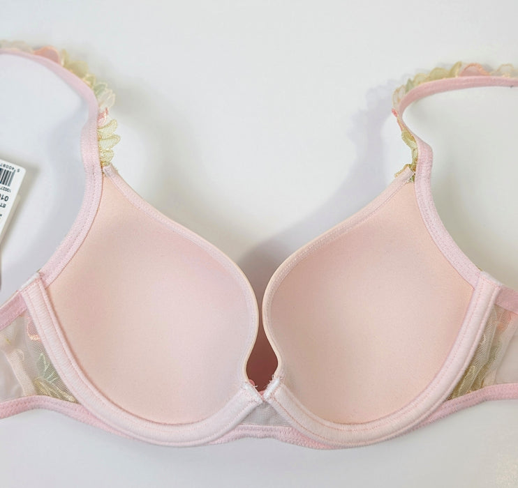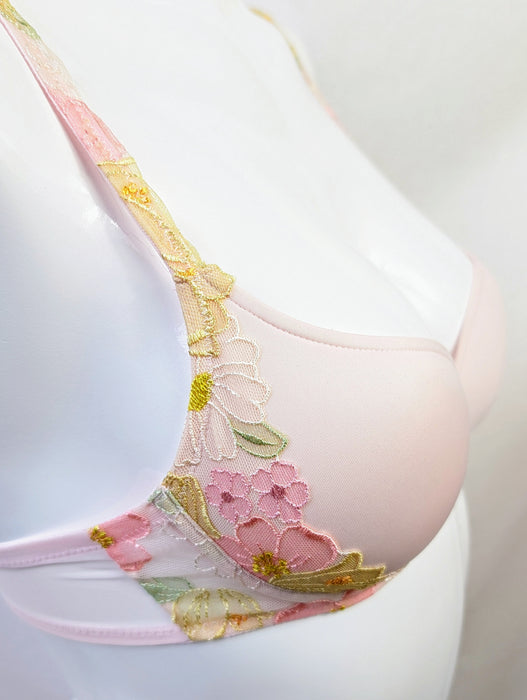 Opulently decorated with watercolor floral embroidery, this bra boasts smooth cups and a deep plunging neckline for a tempting cleavage.