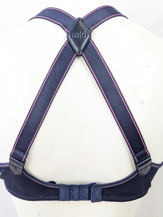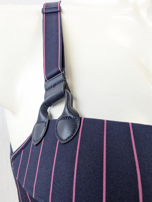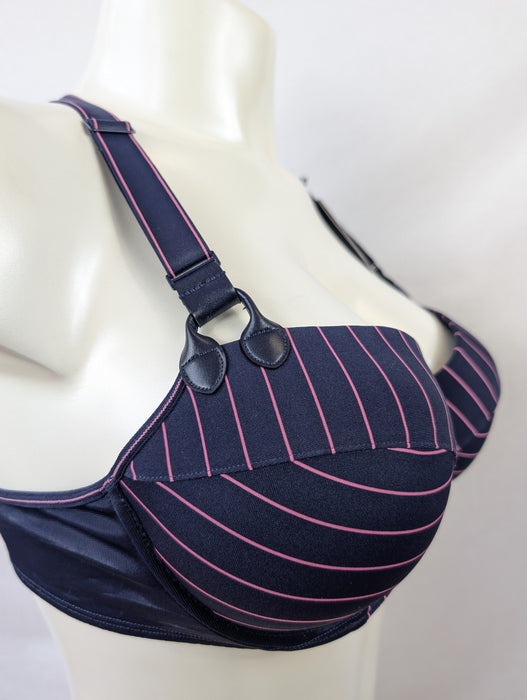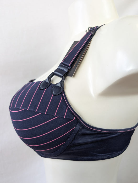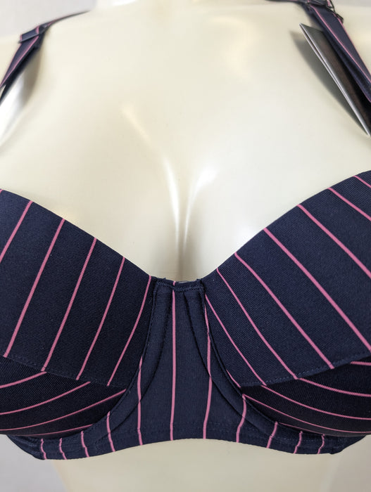 The underwired cups provide lift and a secure fit, while the pinstripe detailing adds a unique, tailored touch.