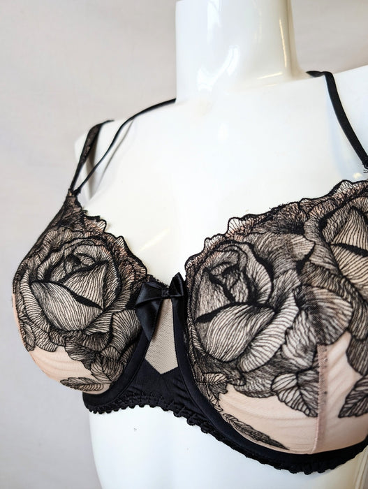 - The detailed embroidery on the cups and back gives the bra a unique and luxurious style, and the sturdy voile cups lift the breasts to create irresistible cleavage.