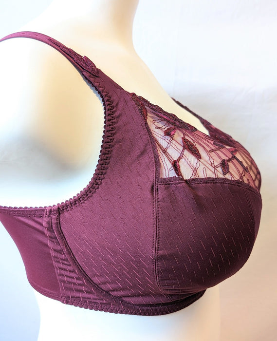 This bra is made with high-quality Belgian materials that ensure long-lasting wear with proper care. The natural cup shape and full coverage through the cup encapsulate the full breast, while the seamed, three-part cup provides lift. The wide, partially adjustable, and wide-set straps ensure ultimate comfort and support for larger cup sizes.