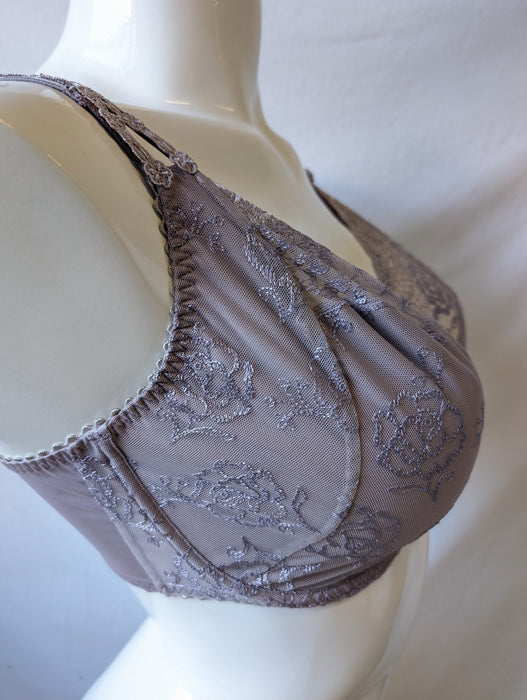 A full cup bra from Prima Donna, Delight, has three-section, unpadded cups. A rose embroidery and a soft knit lining really give this bra its style and comfort. Side sections help centre the breasts for a great shape.