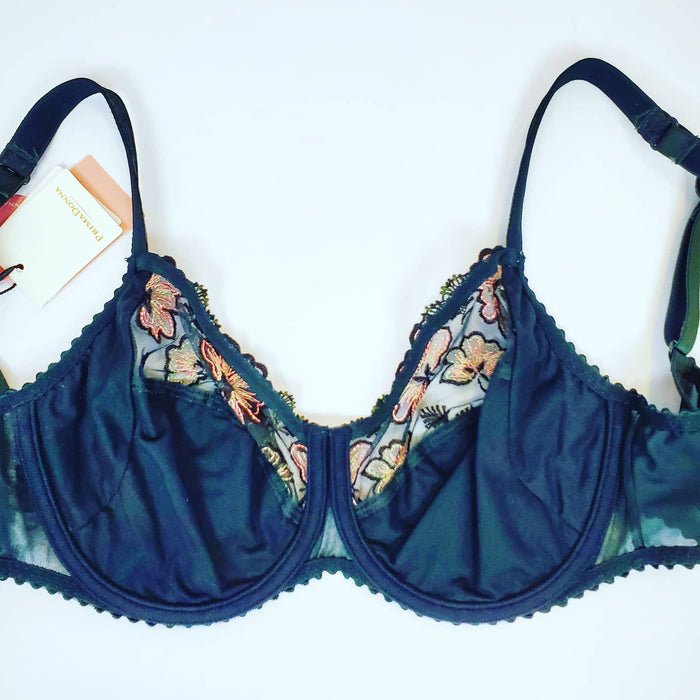 A hard to find Prima Donna bra, Wild Flower in a full cup is a great everyday bra. A supportive bra, with a firm fit, it also oozes a wonderful style with a fun print of contrasting colors. A light, reliable, high quality bra.