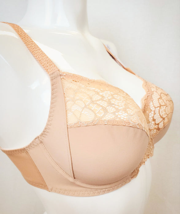 An unpadded bra with 3-part cups that are extra supportive. You get great coverage and the angled seams give you great shape. Side panels help support you and keep your breasts centered.