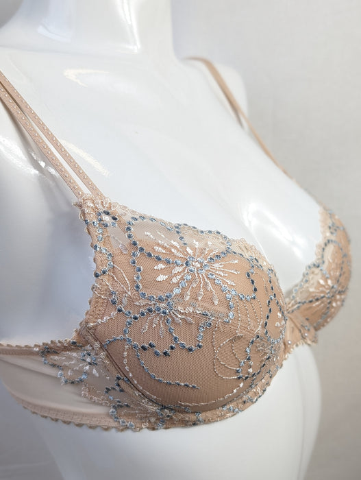Elevate your cleavage with its flattering design and intricate lace embroidery. Enjoy a perfect fit with specially shaped cups and a soft 3-layer encased underwire.