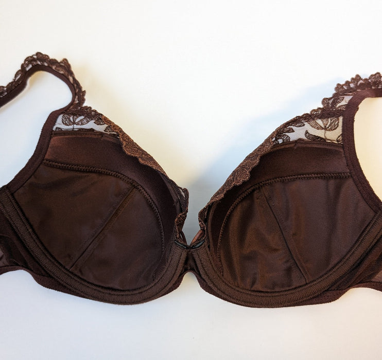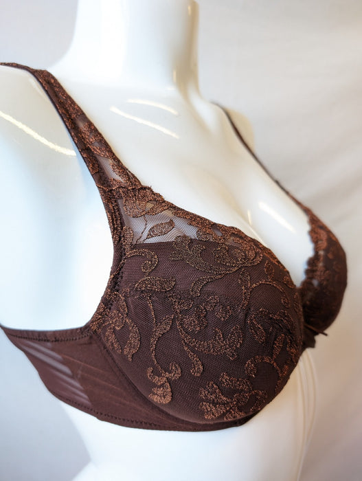 Made with the high style we all expect from Marie Jo bras, the 3-part cups are layered with beautiful embroidery that runs up the straps. The band is a see-through mesh.