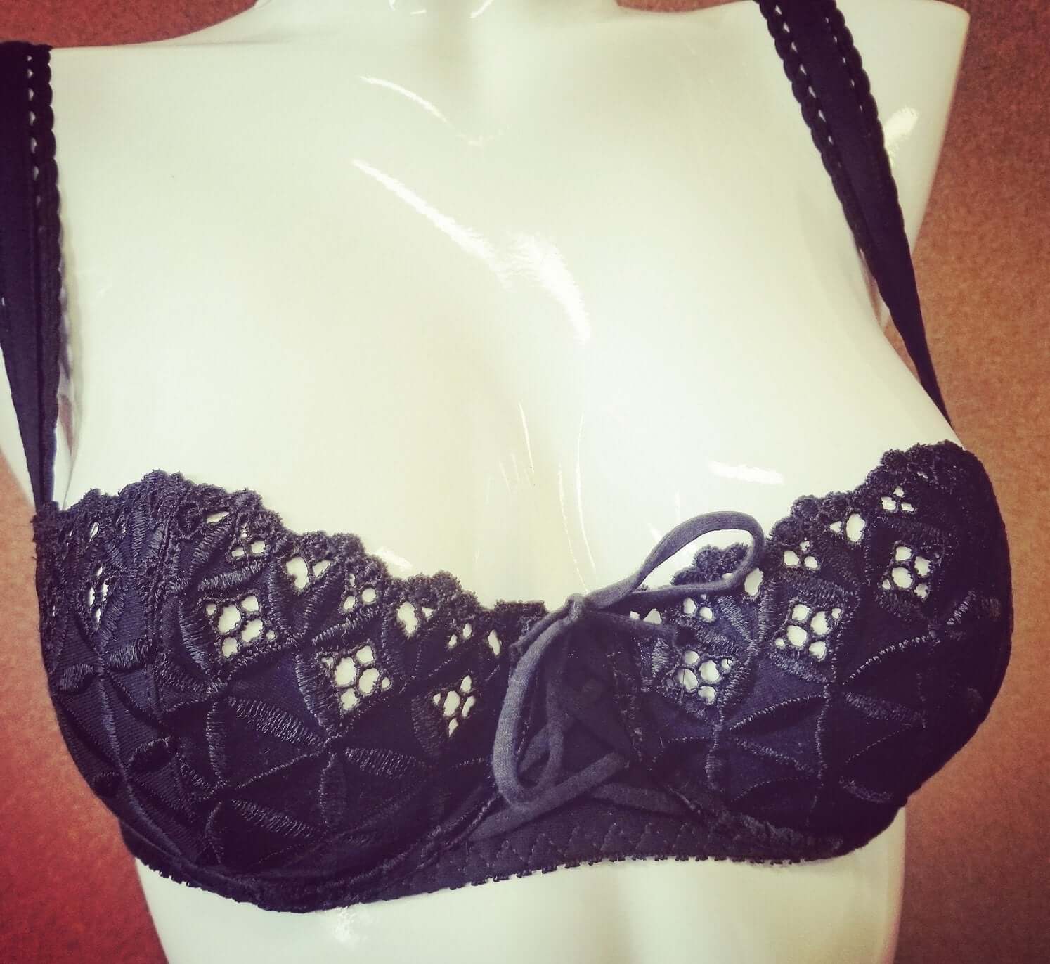Aubade's emblematic half cup bra, this seamed, unlined underwire half cup bra has embroidered cotton cups and vertical seams that shape and lift the breasts that gives a rounded bust and abundant cleavage. Inner slings and side boning offer additional support. Color - Black. Style 5014.