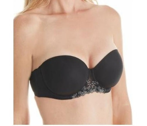 A premium strapless bra from Simone Perele, Delice, offers full coverage with molded cups for a great shape. This comfortable bra with light cups and silicone grippers to keep it in place let you move around freely when you are wearing it in strapless mode, but you can also attach the straps to wear it as a conventional bra. Beautiful details include lace between the cups with elegant embroidery,  finish off this piece of lingerie at a great sale price.