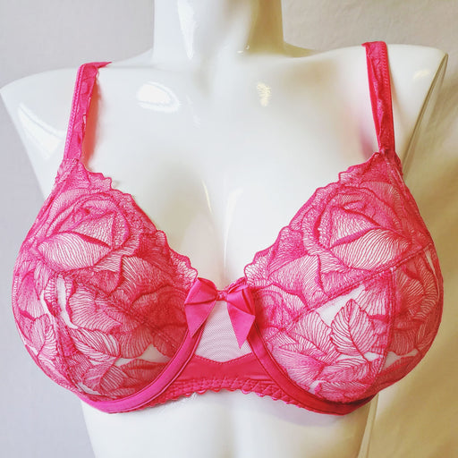 A wonderful, sexy, lacey, wireless full cup bra from Panache, Andorra. This mesh and lace bra in a great color, blush, is super supportive for a so...