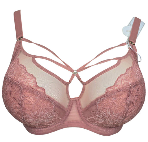 A wonderful, sexy, lacey, wireless full cup bra from Panache, Andorra. This mesh and lace bra in a great color, blush, is super supportive for a so...
