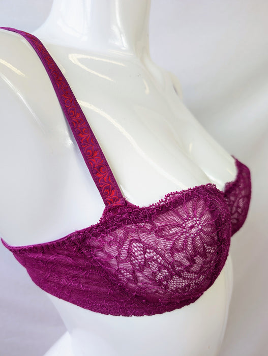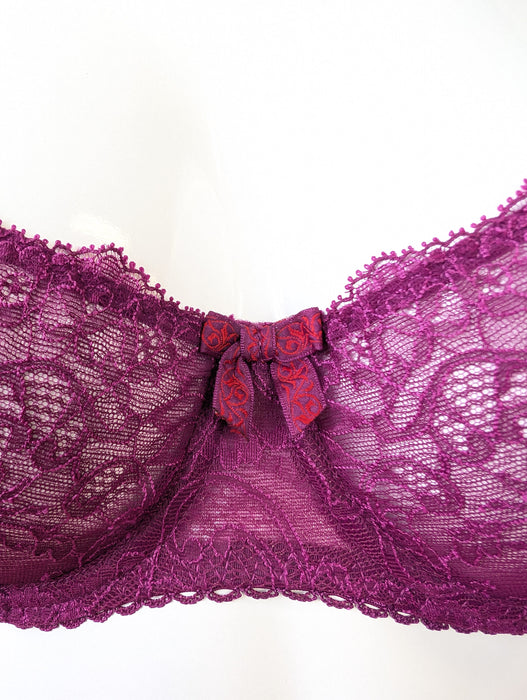 The Aubade Écrin Sensuelle demi bra features luxurious lace detailing that enhances the natural shape, offering a seductive yet sophisticated look.