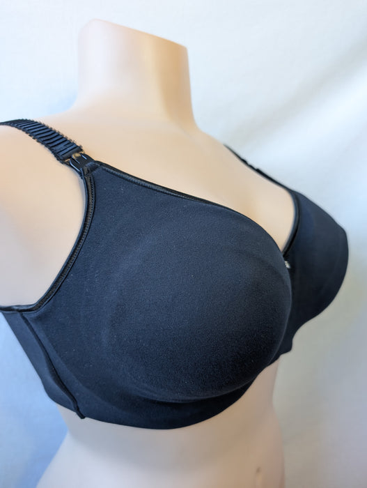 This bra features underwired, molded spacer fabric cups with a microfibre outer layer and a soft cotton inner lining, providing a smooth profile under clothing and exceptional comfort.