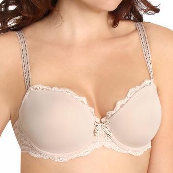 A balconette Chantelle t-shirt bra that stays invisible under your shirt. Made with a smooth, stretch microfiber and an arched center panel for high tummy comfort. A scalloped lace adorns the top of the cups. This underwire bra is ideal if the top of your breasts are less full; it will lift you up and give you fuller, rounder looking breasts.