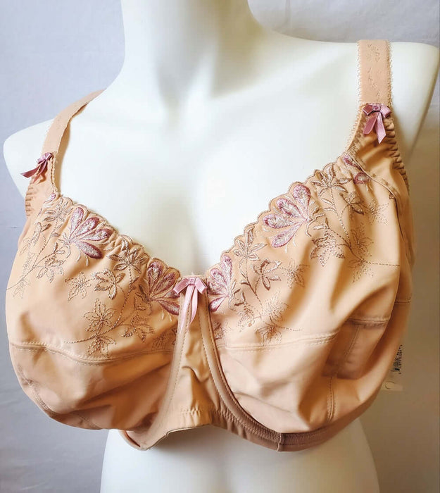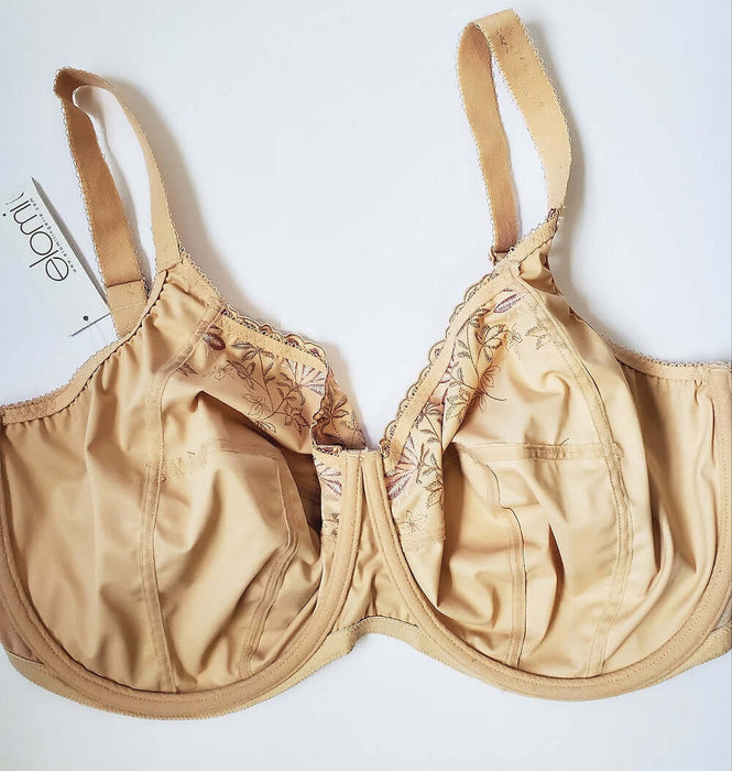 This is an impossible to find Elomi bra! If this is your size, snag it. Cleo, has rave reviews across the internet from women who wore it when it was around. Made of a smooth micro-fibre. A full coverage bra with 4-part cups. Vertical seams to create a great shape and give you a natural profile under your clothes. Side support for a great hold. This is an A+ bra for the plus size woman with large breasts. Elomi bras are go-to bras for this size range. Don't delay, we only have one and it's on sale. We apologize for the image. We couldn't find pictures online and this is the best we could with our mannequins. New. And waiting for you!