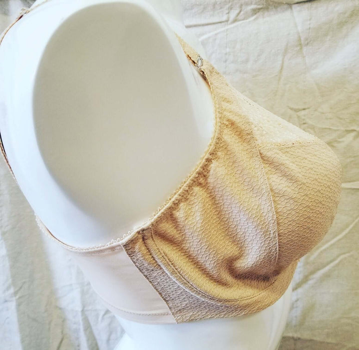 A perfect bra for warm weather, the plunging neck line is ideal for low-cut tops and comes in a discrete light tan color called Sand.