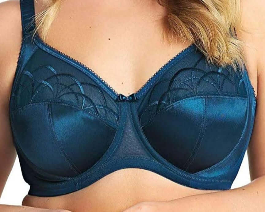 For you Elomi bra seekers! Caitlyn (8030) is almost impossible to find and if you wore it before, you most likely loved it. This plus size bra embodies comfort, support, and coverage. Amazing shape. Amazing lift. Three section cups, side panels, and powermesh sides and back do all the work. A smooth design with sheer top cup panels and Swiss embroidery add the style. Finding this Elomi full cup bra on sale is a real stroke of luck. Enjoy! Color Sapphire. UK Size. Style EL8030.