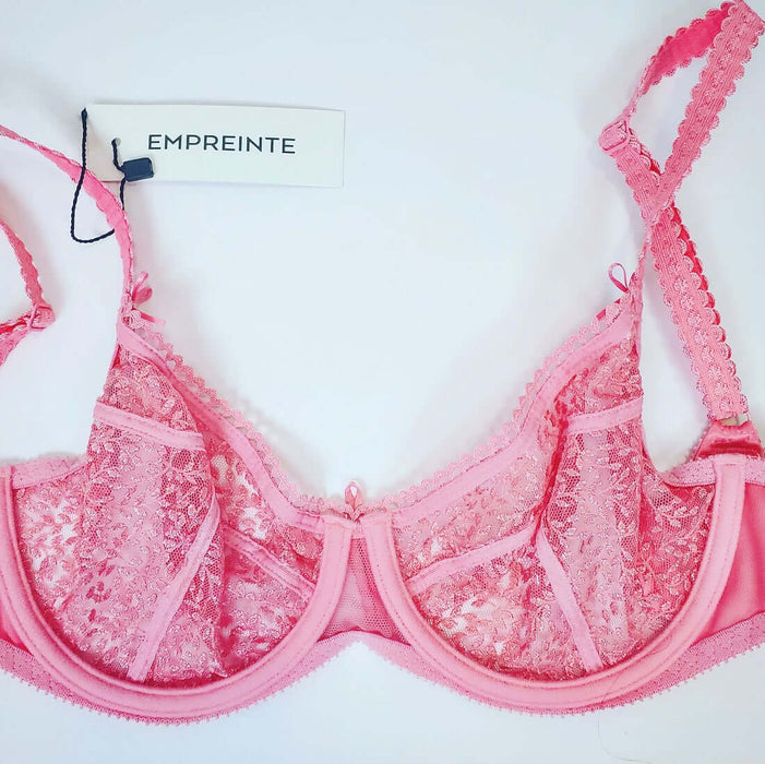 A fun, flirty bra from Empreinte. Kate, a sheer, low neck bra that lets you use those low cut tops and frame your bust in a lively color. Three-section, embroidered cups define this demi bra.
