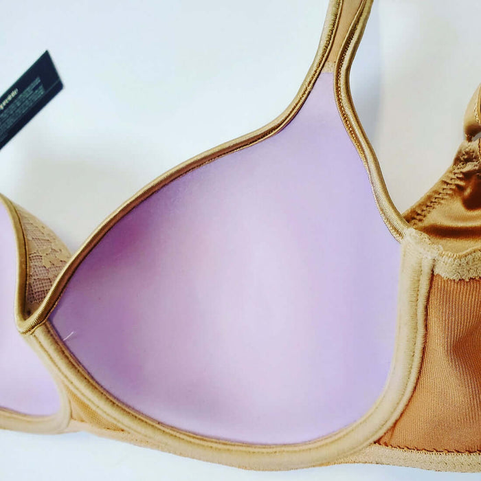 Empreinte Melody, a seamless, padded, low neck bra. A beautifully molded half cup bra that keeps you firmly supported while providing you a flawless natural shape. The cups are covered with floral lace. The sides and back are made of powermesh that stabilizes the back of the bra.