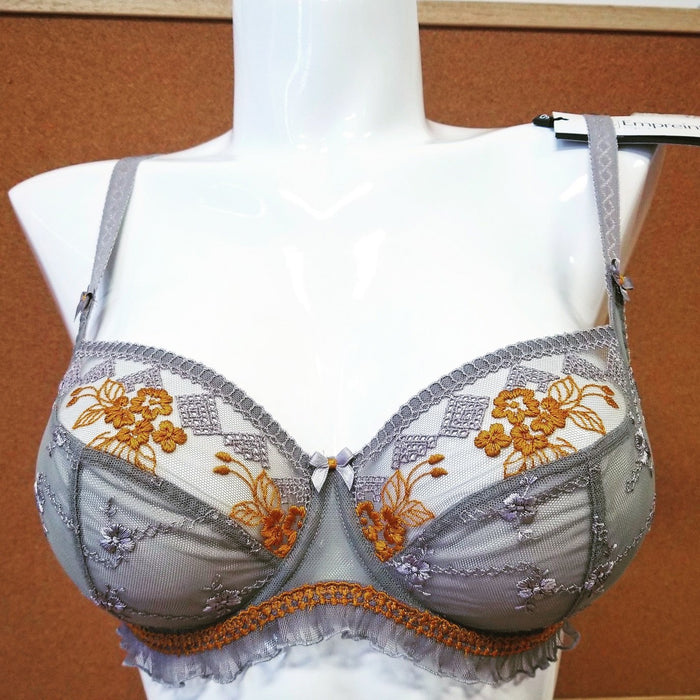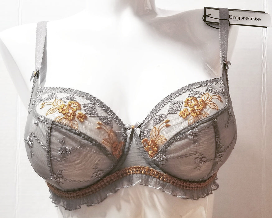 Another beautiful bra by Empreinte, Rafaela in a balconette. This hard to find beauty will not disappoint, with lace along the bottom of the bra and three small bows that add finesse. Comfort and support are always a given with Empreinte. Color - Light Grey. Style 08118.
