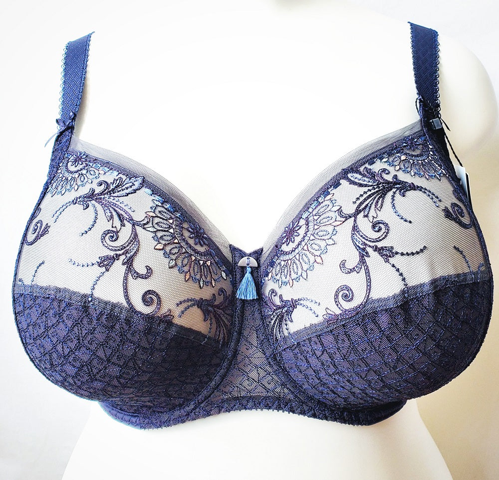 Made of a tulle fabric with elaborate embroidery on the upper cup and playful finishes in the centre gore and straps. A full cup bra that is ideal for the heavy, full bust. This Empreinte bra gives you incredible support with a great shape.
