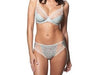 This charming bra in a pale blue with a lovely print offers wide wires for additional comfort, a lightweight fabric for a sheer look, and the 3-section cups with side support gives forward projection. Color - Pale Blue Print. Style 2292.