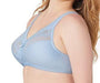 Looking for a full coverage, wireless, minimizer bra? This is it! This Glamorise plus size bra is all work and some play. Using their Magic Lift process, this wireless bra uses a cross-over brand under the cup for lift, support, and separation. Multi-part cups have angled seams to improve shape. Made of a cotton blend for comfort. Style? It has that too. Lace paneled cups with a satin bow accent. Reduce the look of your bust by about a cup with this great wireless Glamorise bra on sale.