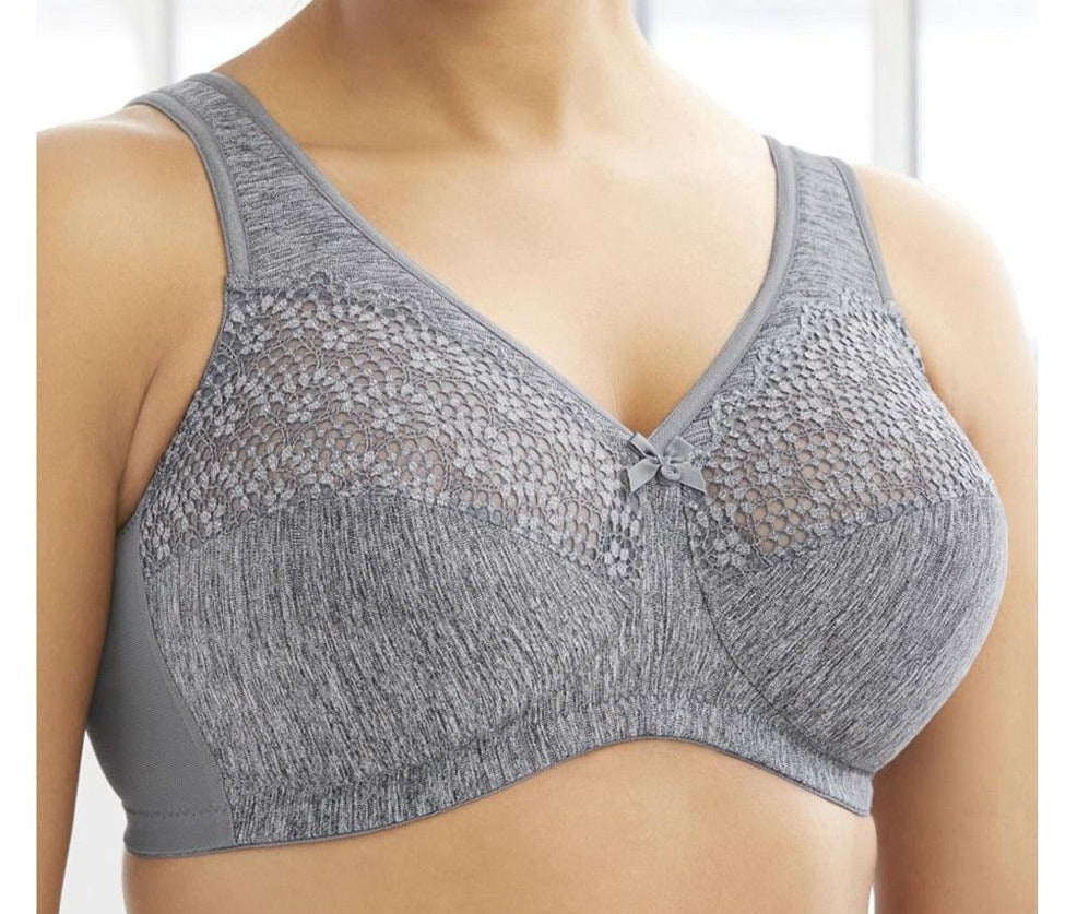 Get lots of support with no wire. This Glamorise bra, Magic Lift, is designed for comfort. A plus size bra made of a breathable moisture wicking fabric. Extra wide straps. Full coverage. An inner support sling gives you lots of support plus it is lightly padded for comfort. This bra is thought out to give you tons of support, oodles of comfort, all without a wire. This discontinued Glamorise bra is on sale.