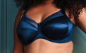 Keira from Goddess, a full coverage, banded, bra with unpadded, four part cups. The satin simplex fabric it is made of gives it a strong fashion appeal.