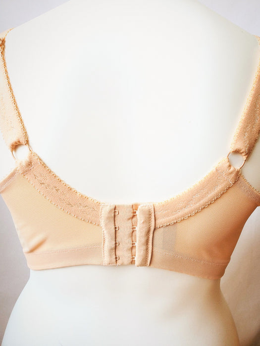 Wireless, softcup, with easy unclasp hooks. 4-part cups, side support panels, and a wide elastic underband make sure your breasts are contained, supported, and shaped. No side spill.