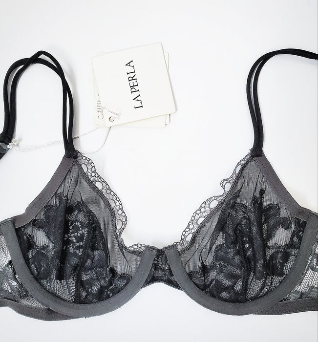 A demi sheer bra. Beautiful lace detail throughout. Unlined and unpadded cups. An ultra-light, seductive, elegant bra. In a classic black, easy to pair with black panties to create a set. Act fast, La Perla bras cheap don't last long.