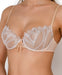 Corolle, a demi bra in sheer lace with volute embroidery and scalloped edges. The vertical seaming shapes your breasts and gives them a lift. This bra is designed to support mid-size busts.