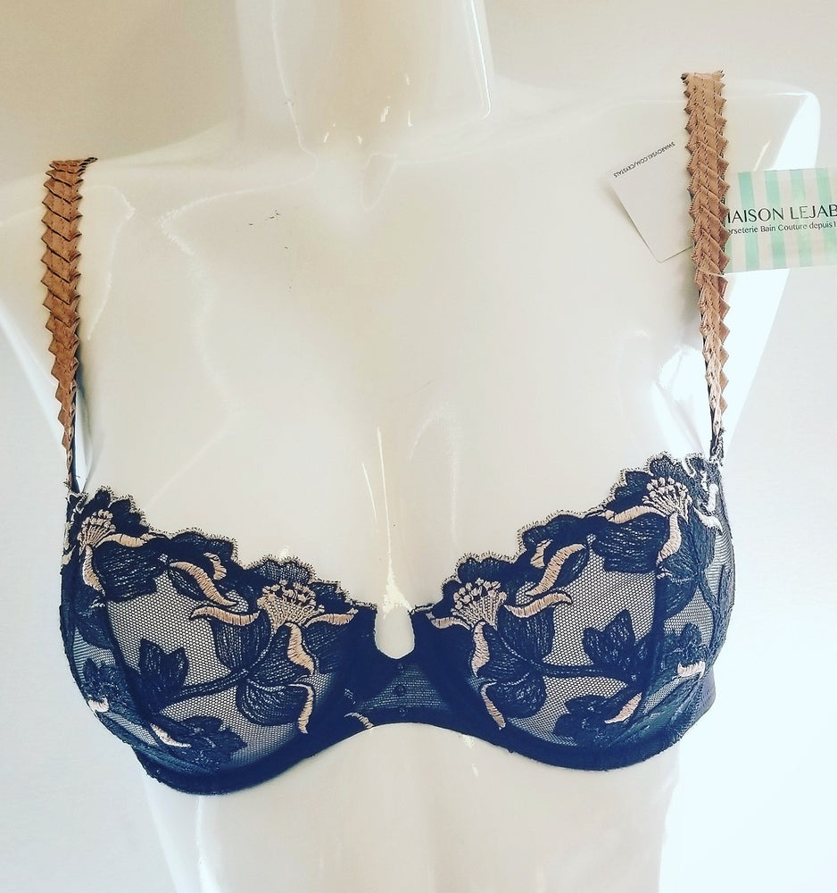 Luxury lingerie maker Maison Lejaby brings you this seductive demi bra named Geisha. Smooth cups with great embroidery and a comfortable fit, this bra a supportive, non-padded, and offers a natural look and feel. Color - Black. Style - 15532.