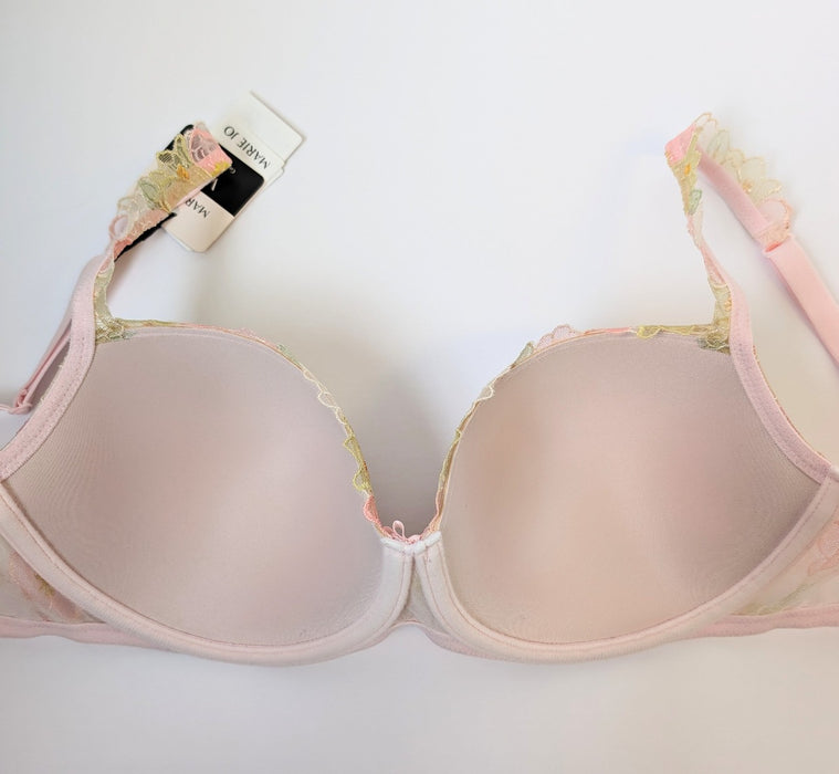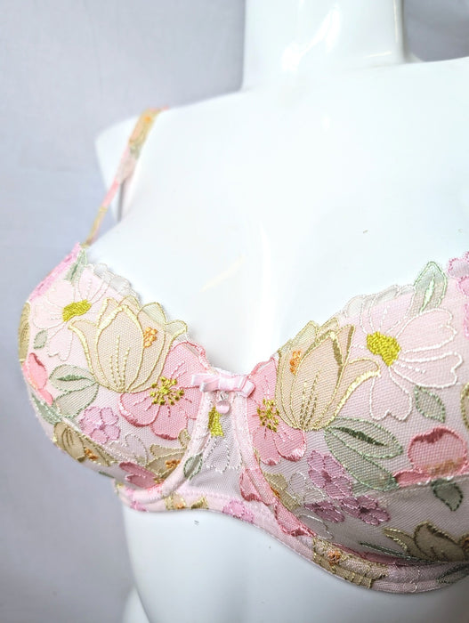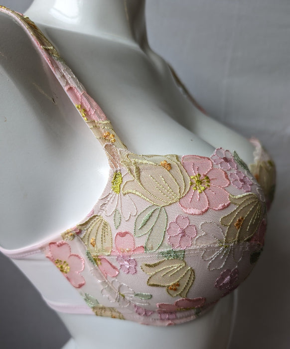 An opulence of embroidery and delicate pastel florals adorn this bra.