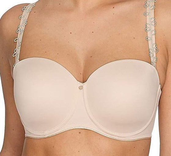 One of the better strapless bras made by the premier bra company, Prima Donna. Perle, a strapless bra with light foam padding in the firm, contour cups, provide modesty, support, and shape. Color - Nude. UK SIZE. Style - 0162348/0162349.
