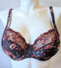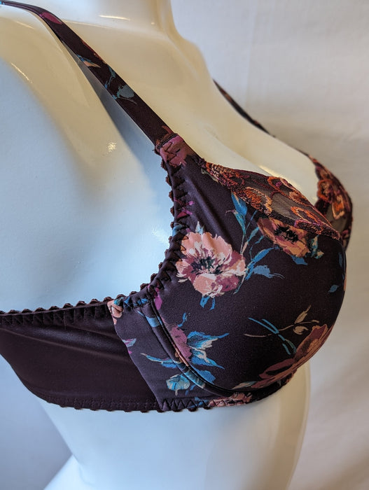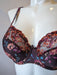 Crafted with warm eggplant hues and copper accents, this bra features a sensual tulip cut and a shimmery floral-print fabric on the lower cups, along with chic embroidery on the upper cups that creates irresistible cleavage.