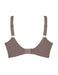 Unlined, 4-part cups made of a non-stretch fabric, transversal seaming and a sheer top edge. Spots on the mesh give it a playful vibe. Side sling keeps in place and brings the shape.