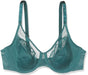 The delicate lace design and wistful green color make this Triumph bra, Lace Spotlight (10194089) a pretty feminine piece. The cups are unpadded and made of a jersey material with lace and covered in a delicate tulle. A curved neckline gives you excellent bust coverage. It comes in a solid color that makes it easy to match with panties. Color - Mystery Green. UK/US Size. Style 10194089.