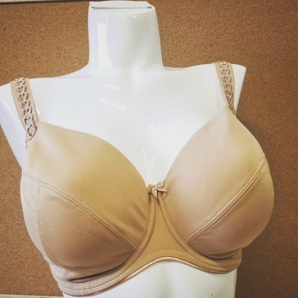 Another fantastic Ulla bra for the full bust. The Yara plunge is especially designed for the big cup size. It features multiway straps and invisible seams. It offers superior support and removes the concern of your breasts popping out when you bend, as they often do, with plunge bras. This bra will retain its hold through any rigour. One of the top three brands in the world. This bra will not disappoint, if you have never worn Ulla, take advantage of our prices to start. Color Nude. Style 3725.