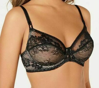 This is not a bra you wear to be active, Wacoal's Lace to Love (855297) is lightweight with two section cups, sheer, lacey, and maybe even racey. Plus she holds up in fit and support, comfortable, side slings for shape, and an underwire for support. Pair with black panties to match. Color - Black. UK Size. Style - 855297.
